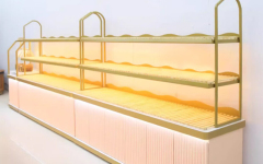 在烘焙行業競爭日益激烈的今天,一個設計精良、功能完備的面包展柜不僅是展示產品的窗口,更是吸引顧客、提升品牌形象的關鍵。從定制設計到精準安裝,每一個環節都需精心打磨,才能打造出既美觀又實用的展示空間。定制設計:融合美學與功能面包展柜的定制需以店鋪風格和產品特性為出發點。若店鋪主打復古歐式風格,展柜可選用木質框架搭配暖色調燈光,營造溫馨典雅的氛圍;若走現代簡約路線,則可采用玻璃與金屬材質,搭配冷白色燈光,突出產品的精致感。同時,要根據店鋪面積和布局合理規劃展柜尺寸,確保空間利用率較大化。小面積店鋪可